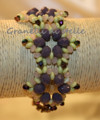 Bracciale romantico con toni pastello. Realizzato con moduli stellina “tessiti”, mezzi cristalli. Disponibile in vari colori.