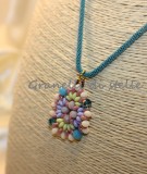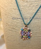 Collana con cordoncino e ciondolo “tessito” con perline e mezzi cristalli.