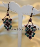 Orecchini “grappolo” corti realizzati con la tecnica della tessitura con perle minute.