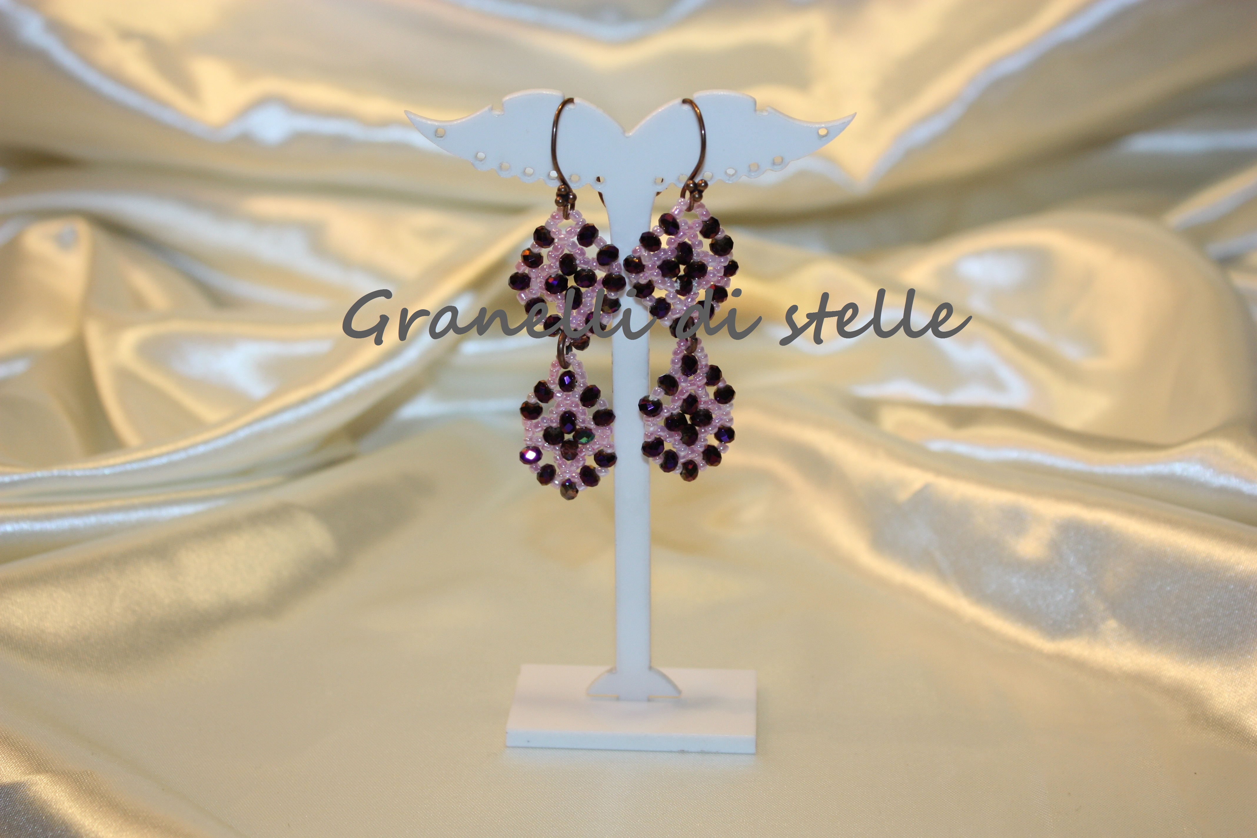 Orecchini “grappolo”, per chi ama uno stile delicato, realizzati con la tecnica della tessitura con perle minute.