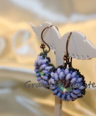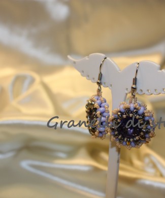 Orecchini realizzati con la tecnica della tessitura con perle minute e mezzi cristalli.