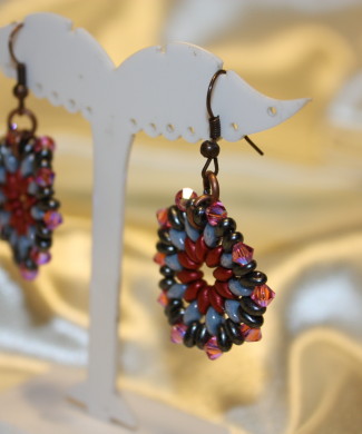 Parure Completo in stile medievale in rame, fiorellini con perline di fiume, strass e bicono Swarovski