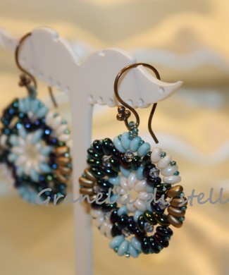Orecchini “rosoni” con perle, mezzi cristalli e Swarovski