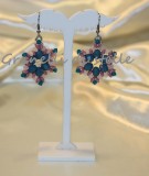 Orecchini “stelle” realizzati con la tecnica della tessitura con perle minute e mezzi cristalli, nei toni turchese, rosa e ghiaccio.