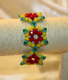 Bracciale ispirato a colori allegri e tropicali. Realizzato con moduli stellina “tessiti”, mezzi cristalli. Disponibile in vari colori.