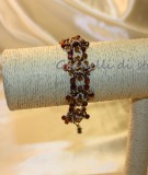 Bracciale sfavillante che ci ricorda i gioielli d’epoca. Bracciale realizzato con vari moduli “tessiti” con perline, pietre naturali e Swarovski. Disponibile in vari colori.