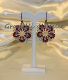 Orecchini “rosoni”, realizzati con la tecnica della tessitura con perle minute e Swarovski.