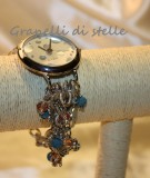 Orologio-bracciale 2 in 1, pensato per chi ama un tocco di allegria e non vuole rinunciare allo stile. Realizzato con ciondoli in lega e mezzi cristalli di diversa forma e colore. Quadrante con strass.